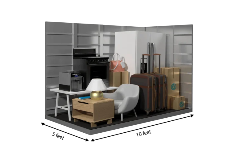 Our 5×10 (50 sqft) storage units are one of the more popular sizes for people of all storage needs. These units will hold the amount of items in a small bedroom, office, or shed. You can fit a lot more than you think in this size of unit if you pack it right by utilizing the 8-foot height. 5×10 units are ideal for boxes, mattresses, business inventory, seasonal décor, instruments, and more. If you have “a few boxes, a few small pieces of furniture, and a few other items,” this is the size for you.